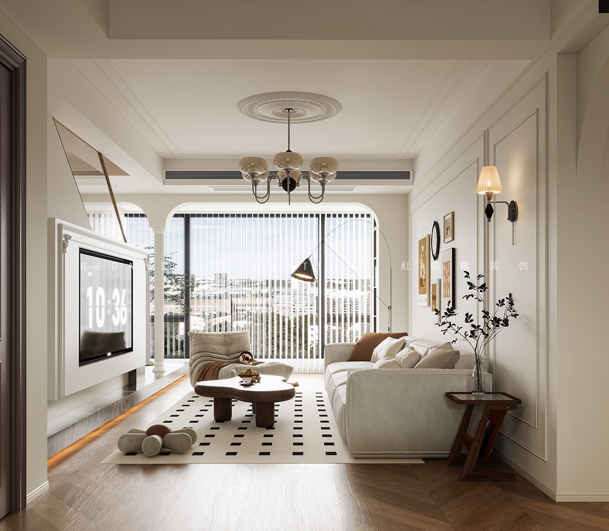 本方案以复式户型为载体,打造下层法式复古、上层新中式禅意的双风格融合空间,兼顾社交温馨与独处静谧。