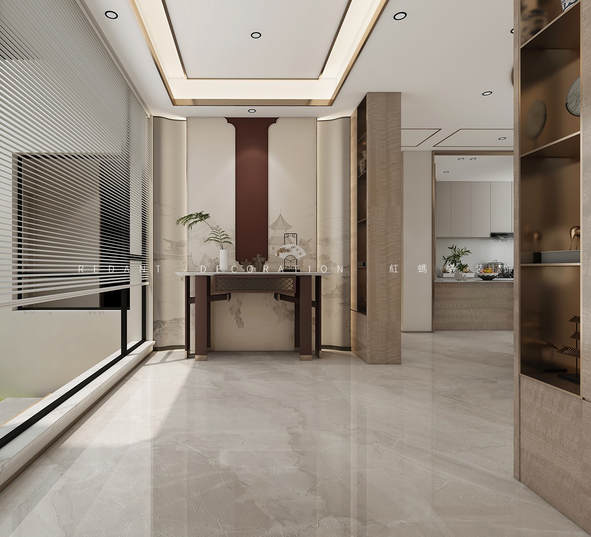 本方案以现代轻奢融合新中式为核心,以浅米、深咖、金属色为统一色调,搭配大理石、木饰面等材质,打造仪式感与实用性兼具的高端居所。
