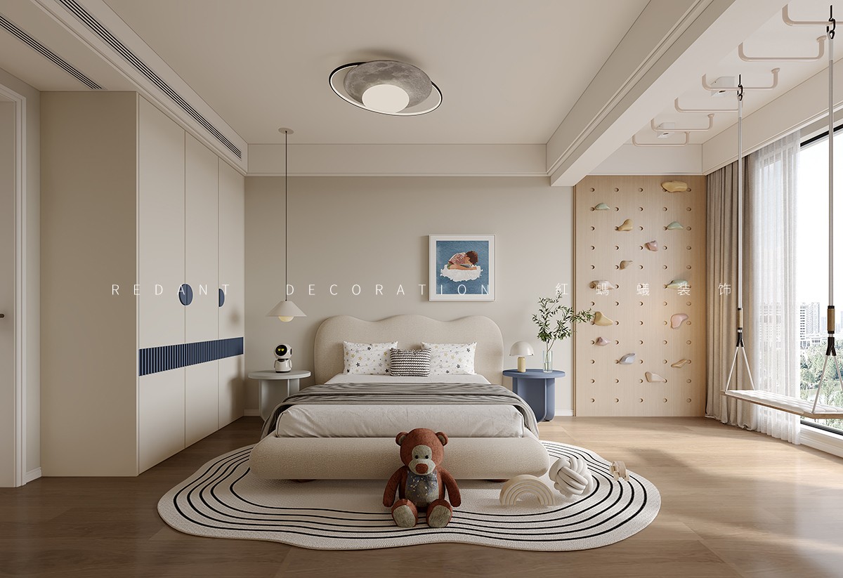 本方案以暖白、浅橡木色为基底,搭配实木、棉麻与低饱和蓝调,打造宜居空间。客餐厨一体化布局,浅米沙发配实木茶几,蓝地毯成视觉亮点,洞洞板打造音乐角;玄关实木柜配蓝调挂画,拱门与百叶窗增层次;卧室浅橡木背景墙配通顶衣柜,悬浮飘窗书桌兼顾办公阅读。设计以原生材质、和谐色彩、人性化规划,融合自然治愈、个性表达与现代生活需求。