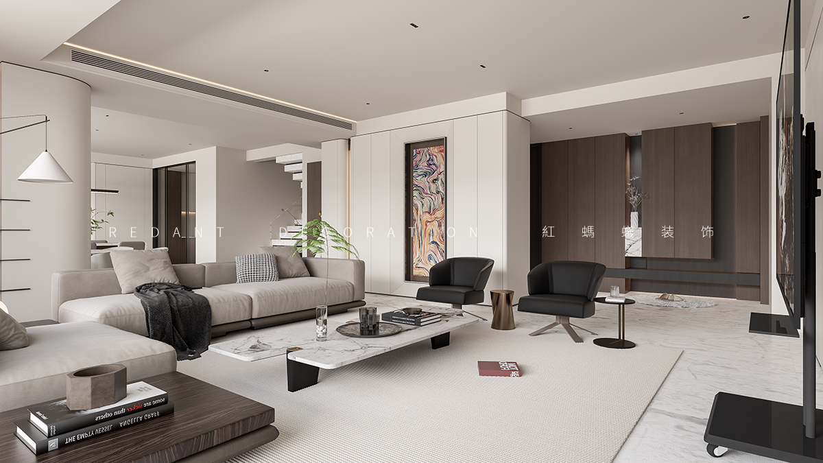 细节与氛围:简约线条勾勒家具形态,搭配艺术挂画、精致摆件,增添空间艺术感。线性灯光、隐藏式光源营造柔和且富有层次的照明,强化空间现代感,让居者在简洁环境中,感受自然与艺术交融的惬意生活 。
