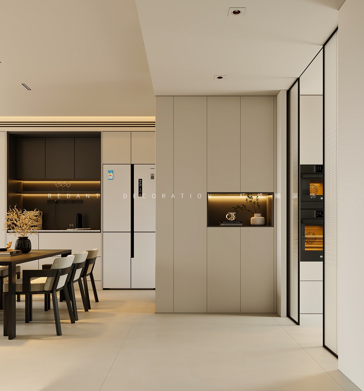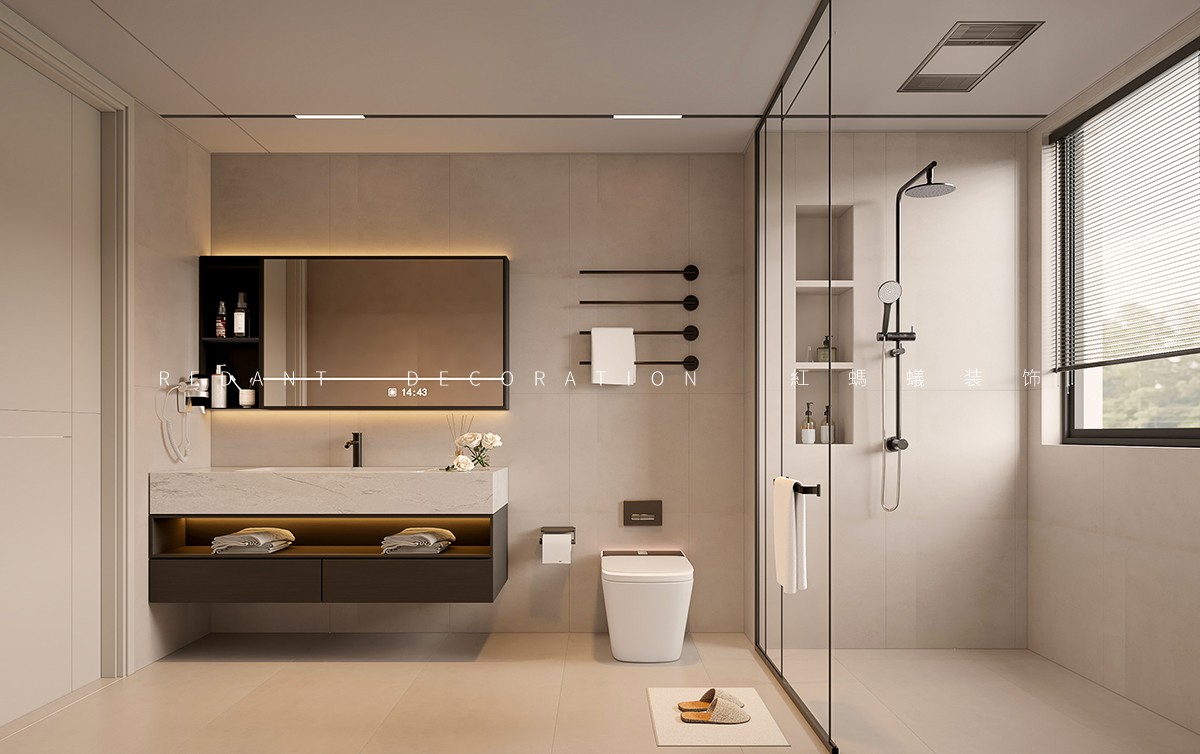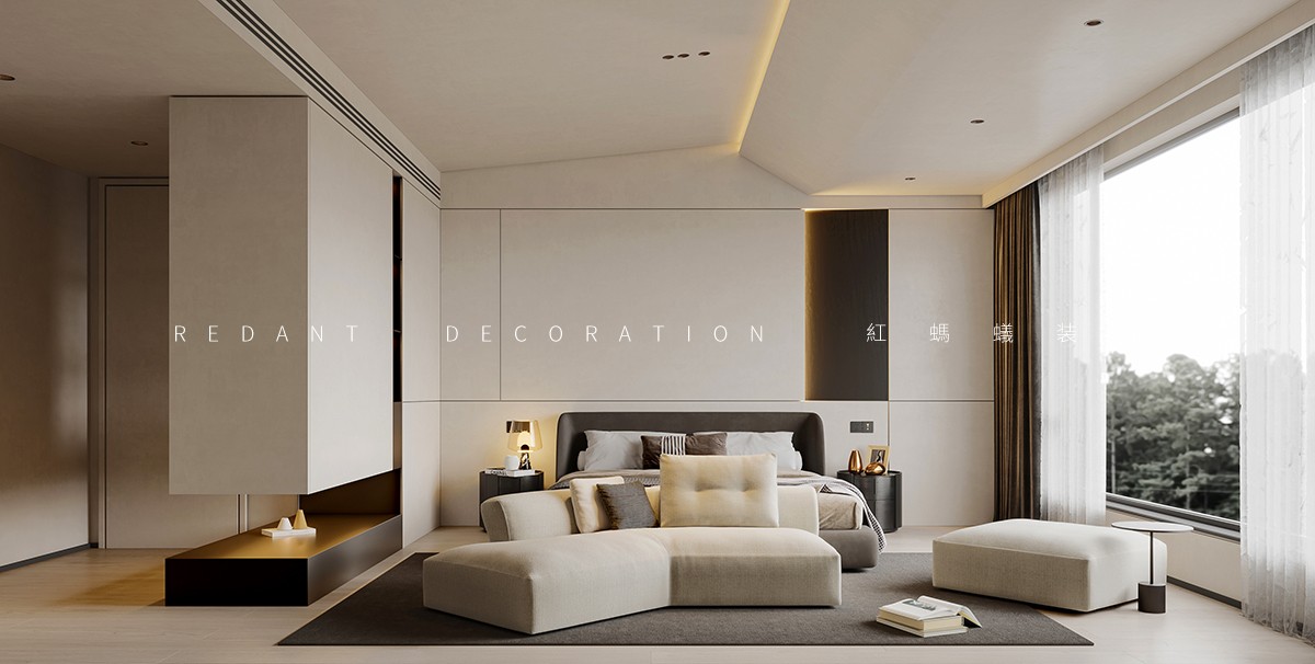 本项目以现代风格为核心,以米白、浅灰、深棕为主色调,暖金色灯光点缀,打造高级静谧的居住空间。客餐厅采用开放式一体化设计,借大面积落地窗引入自然光;卧室以材质色彩过渡营造私密休憩氛围。材质上运用哑光烤漆、微水泥等,局部点缀深色木饰面与金属线条。照明采用无主灯设计,公共区明亮开阔,卧室柔和温馨。通过定制收纳整合功能,以纯粹线条、材质与光影构建空间,打造简约舒适的理想居所。